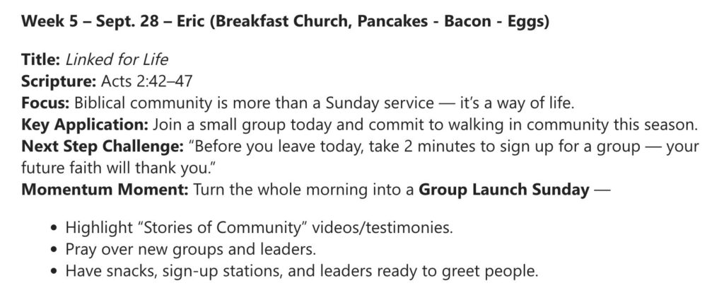 I received a brief summary of the sermon including the title, key verses, focus, and the desired application. My Objective was to create a multimedia video to promote one of Life Community Church’s upcoming sermons. With that information I was able to create this video that promotes a special church service were breakfast was being served.
