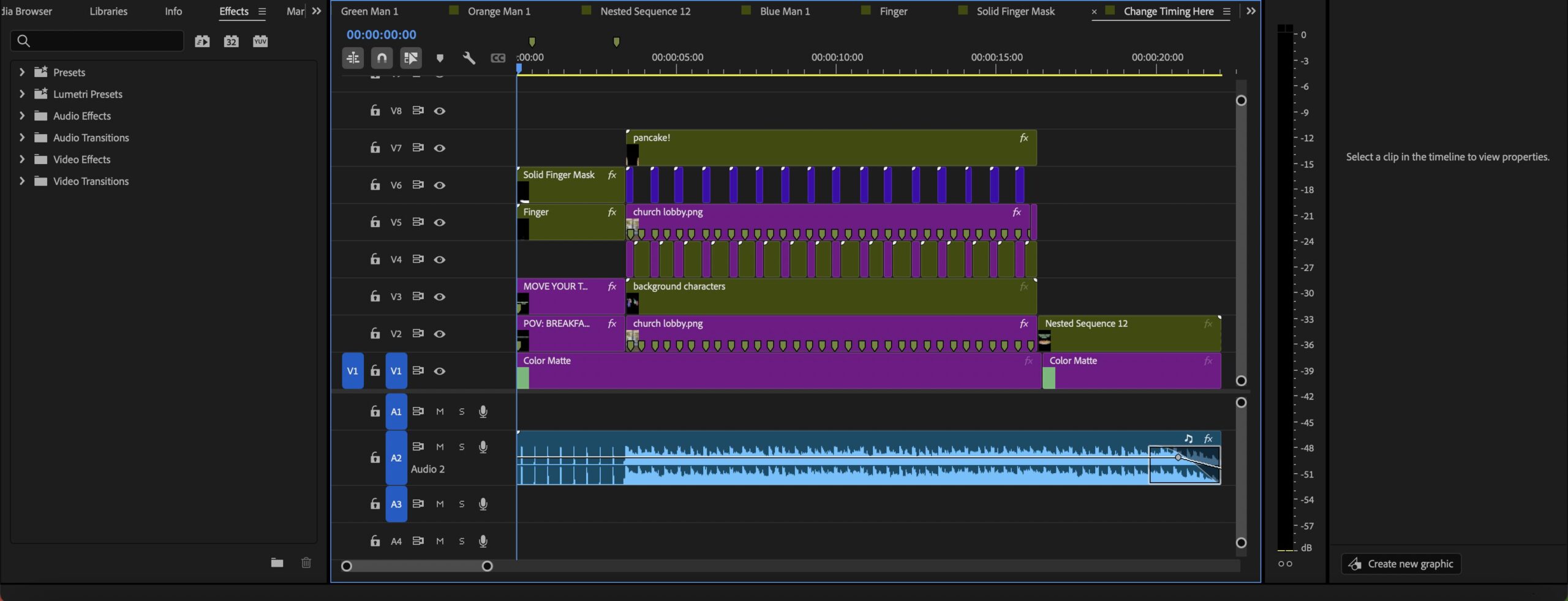 Imported the rotoscoped finger into Premiere, refined it with a masked solid version for clarity, and aligned its motion with the animation timing to trigger the interaction.